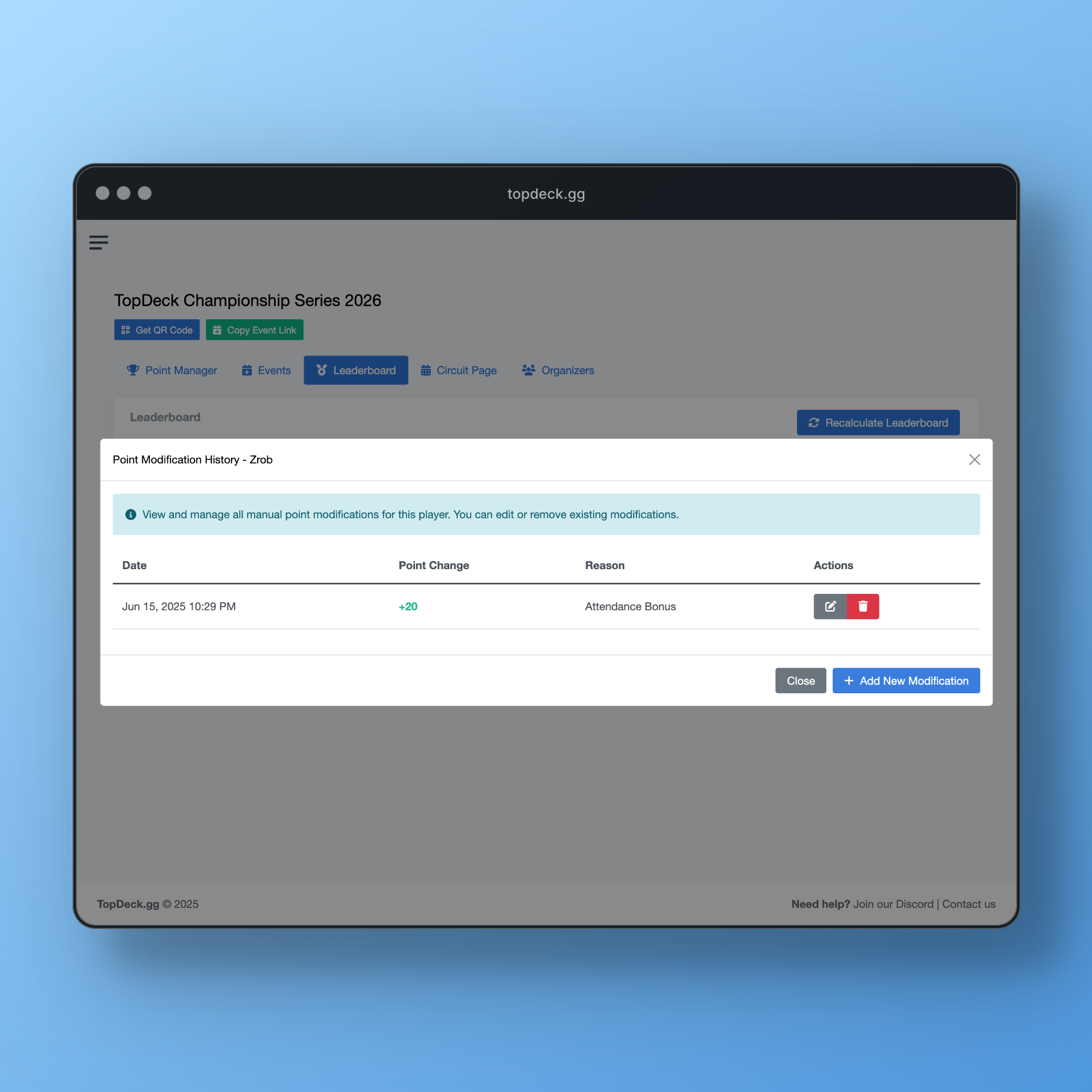 - Enhanced Point Modification Tracking: Full history of manual adjustments with timestamps and reasons