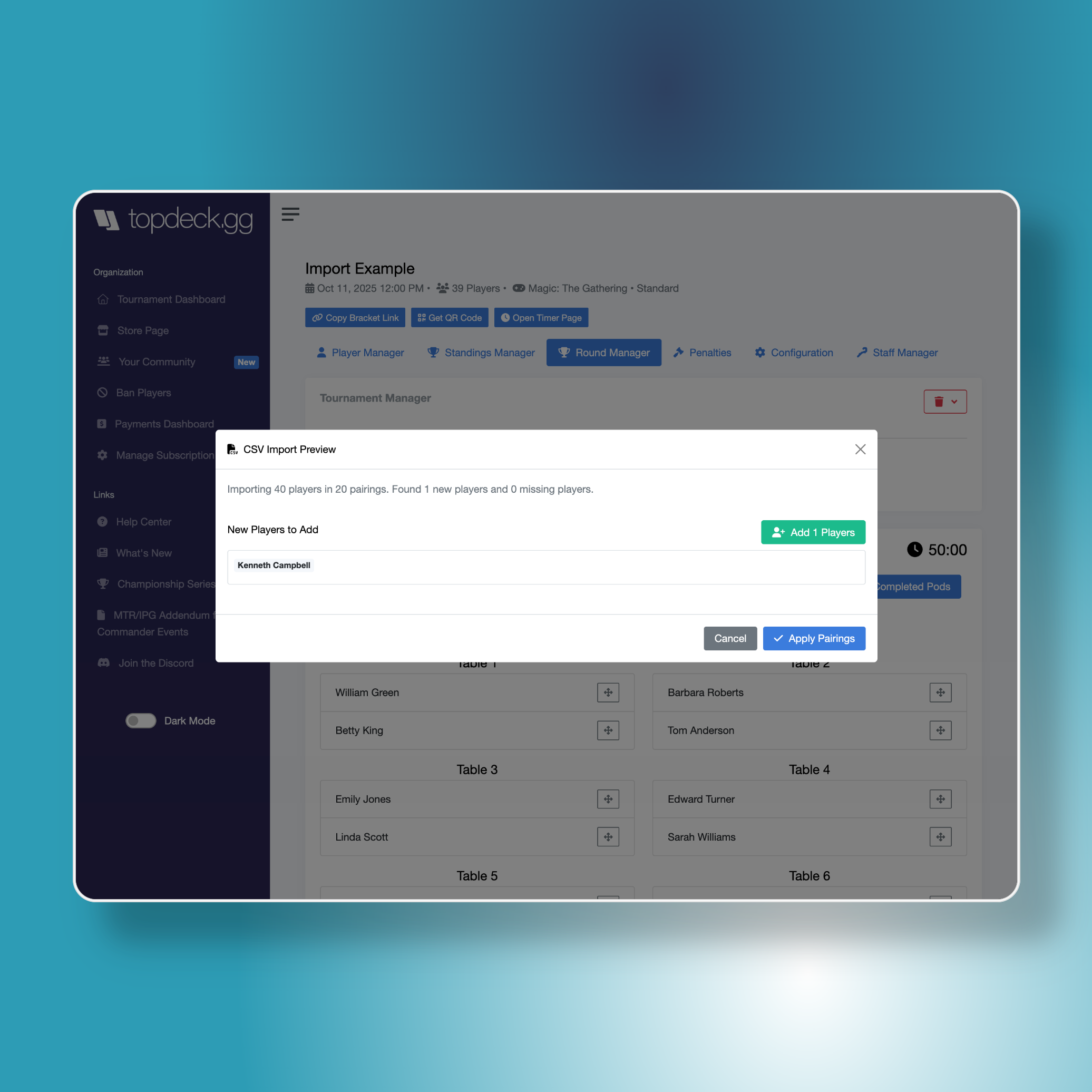 Tournament software crashes happen. When they do, every second counts. Today we're unveiling CSV Pairings Import, a feature designed to make TopDeck.gg the perfect backup for your events.