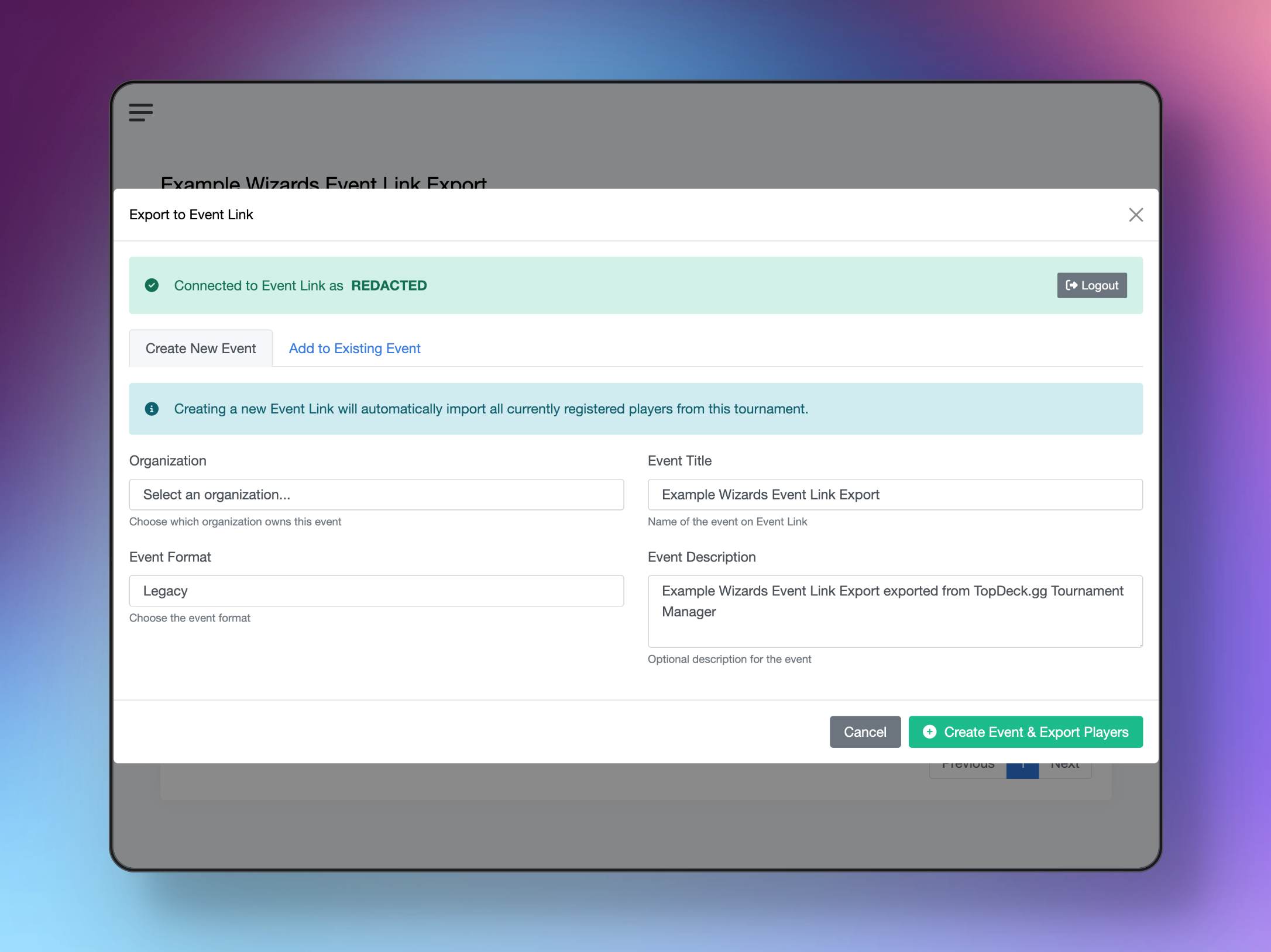 The Event Link Export System is available now for all TopDeck.gg tournament organizers. To get started:
