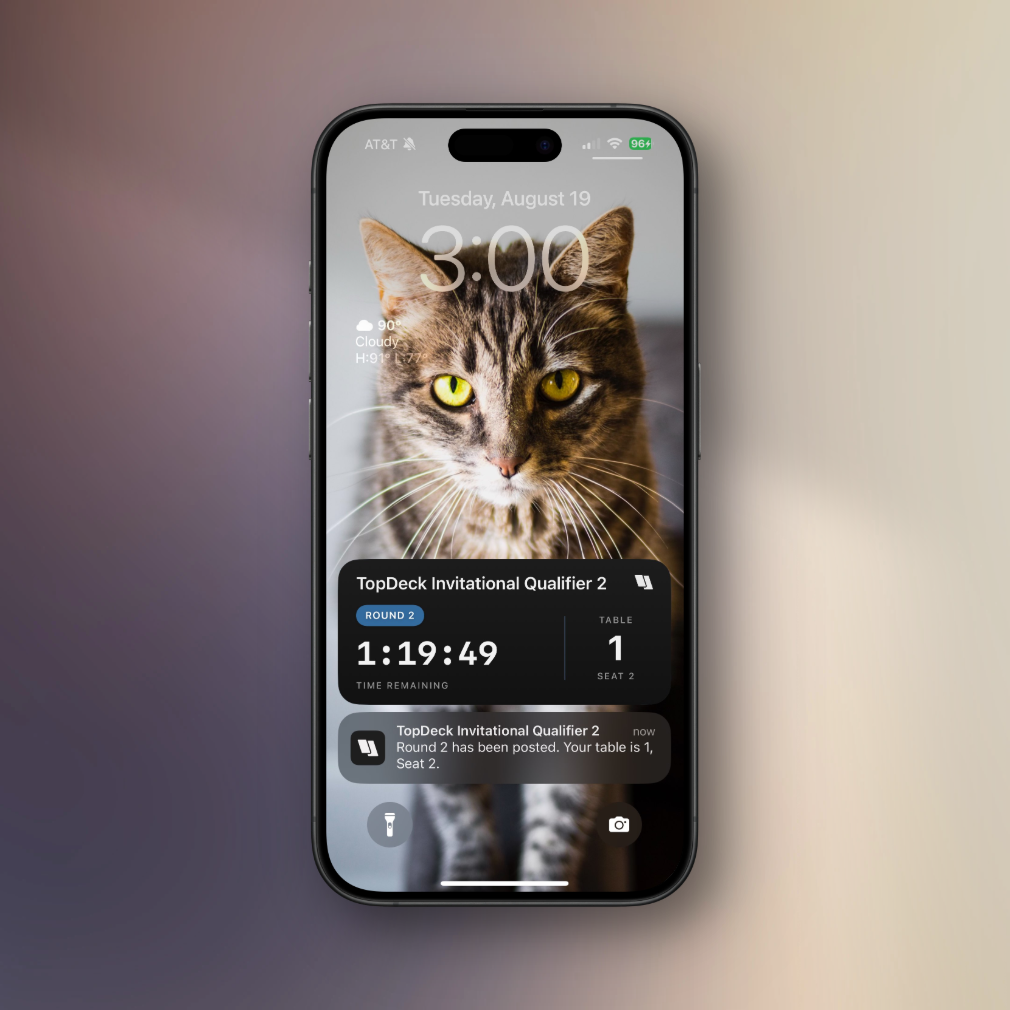 This means you can keep your phone in your pocket during matches and still stay informed. See round timers, pairings, and updates at a glance, no unlocking required.