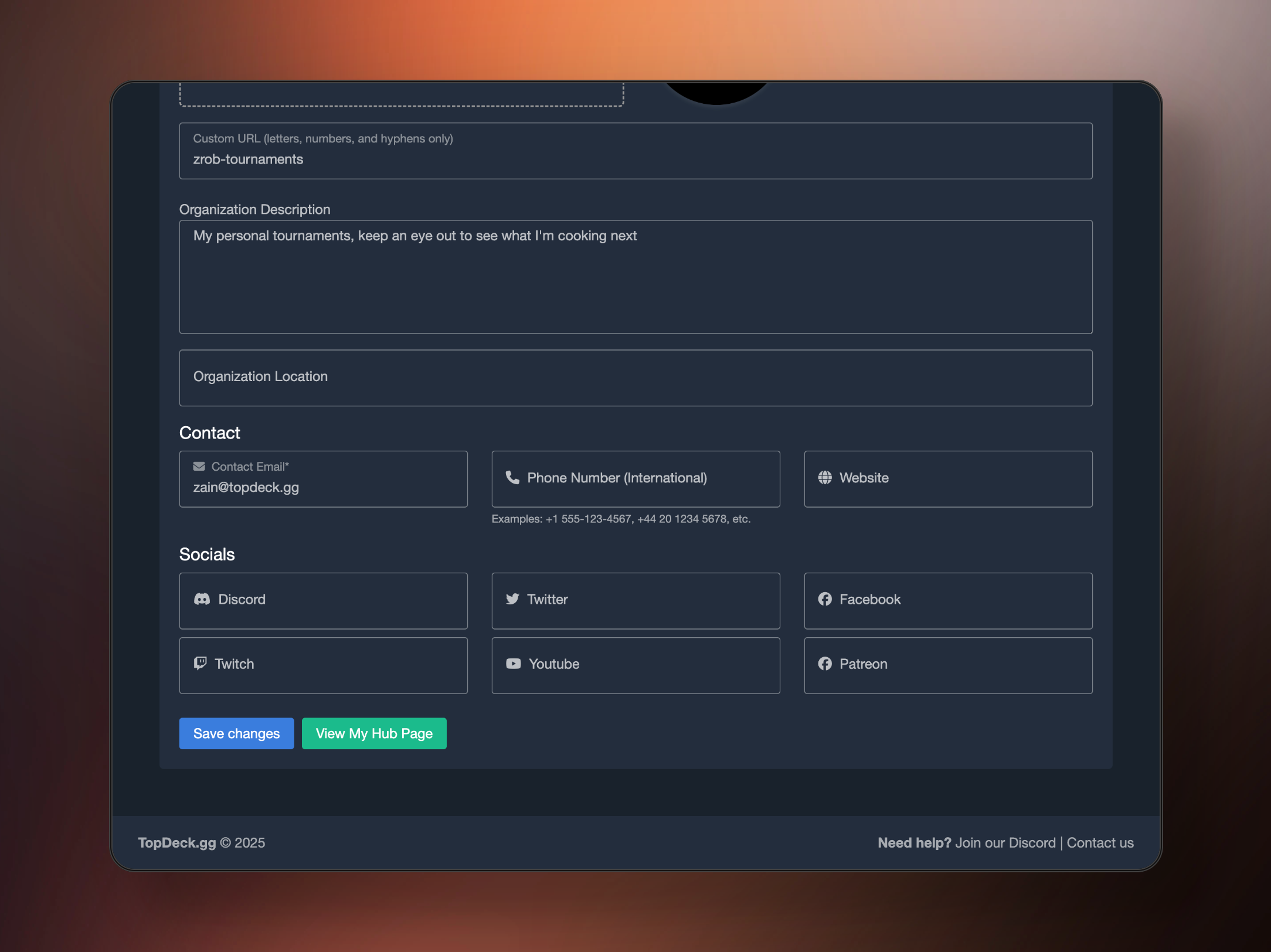 - Organization Location: If you have a storefront, share your address here! This is also used to show players what stores are near their locations.