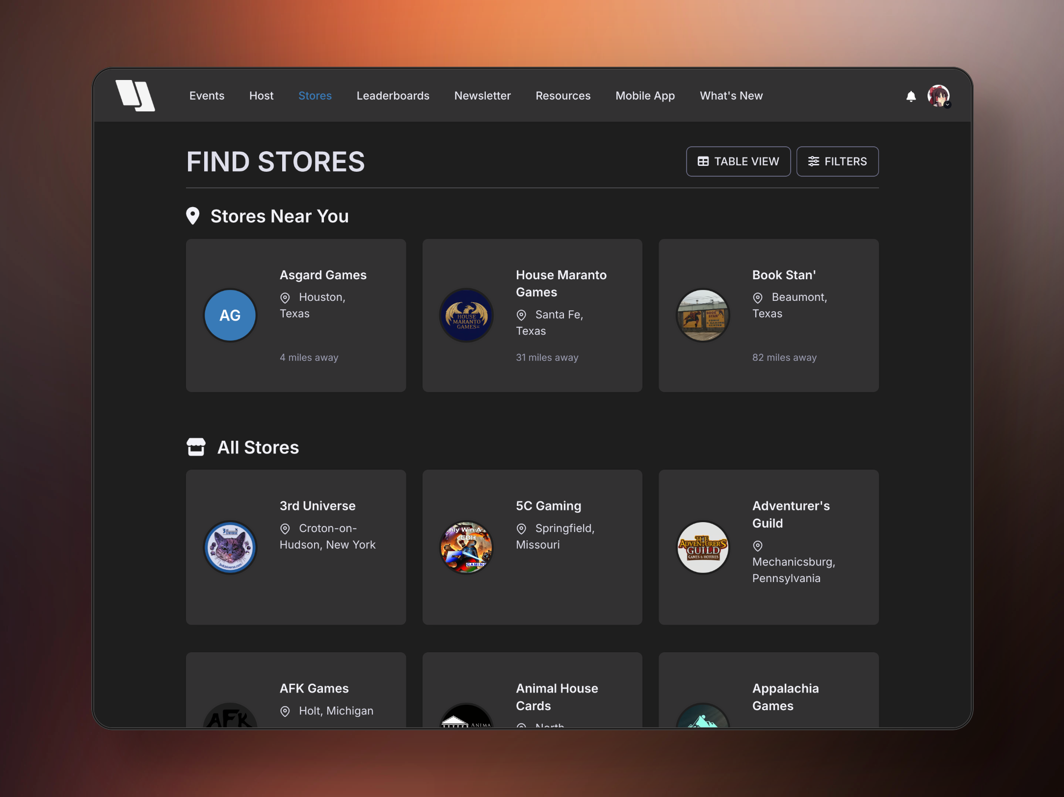 Store hubs are also discoverable by players in the Stores tab on the main TopDeck.gg webpage.