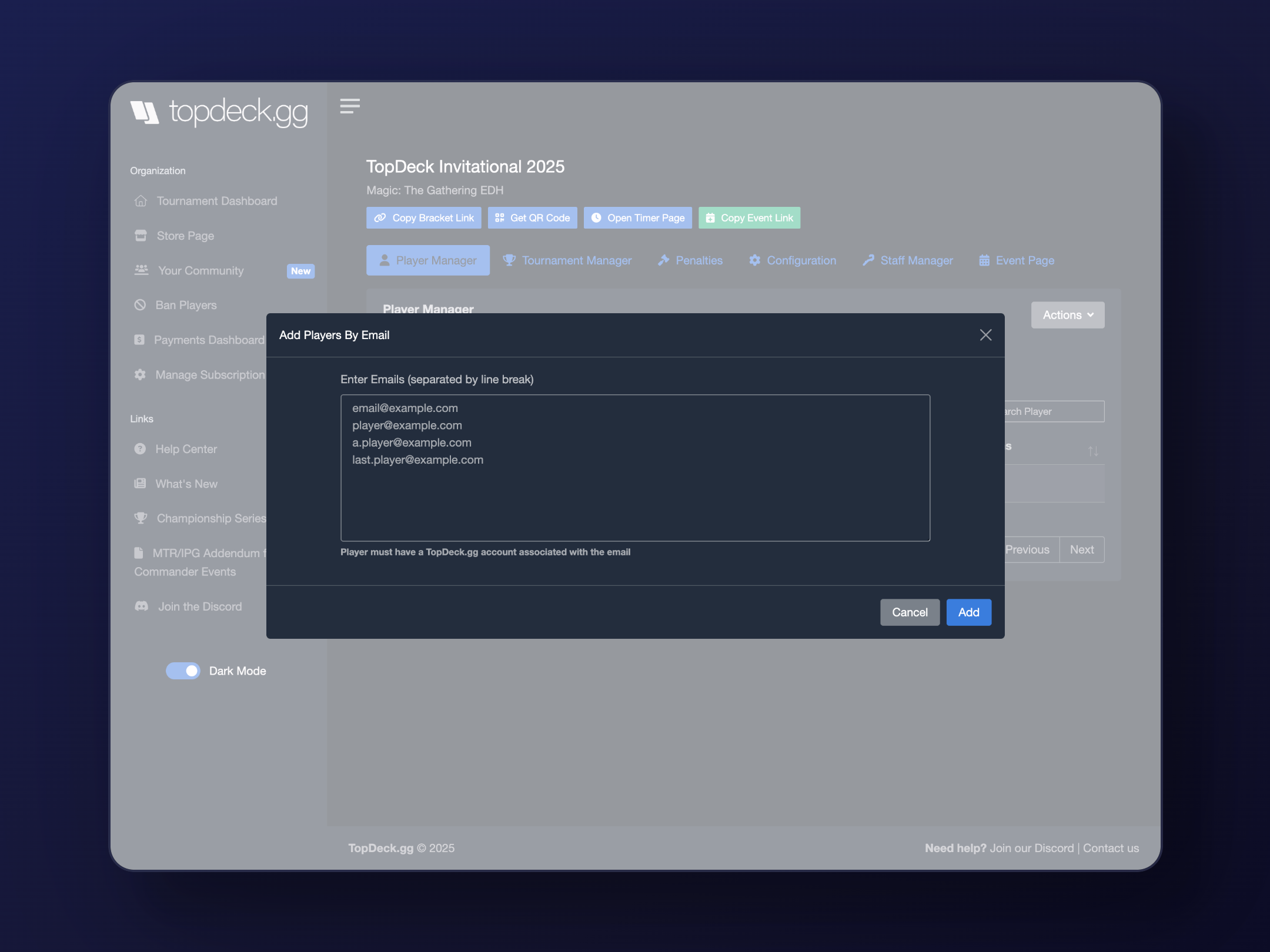 TopDeck.gg is designed specifically for tournament organizers of all experience levels. Our software provides step-by-step guidance for creating tournaments, managing registrations, and running Swiss pairings with minimal technical knowledge required.