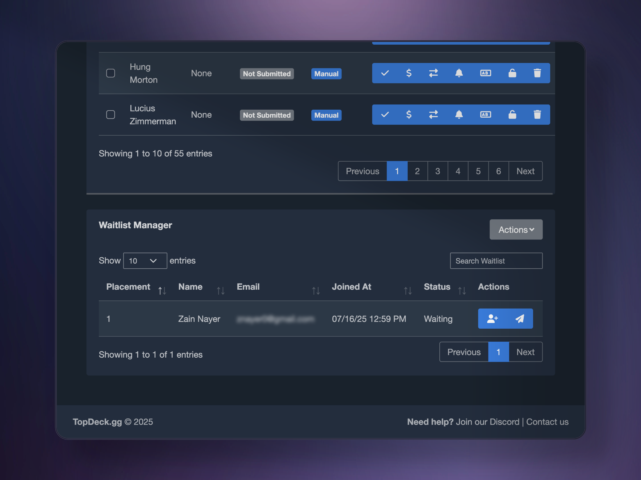TopDeck.gg comes equipped with an automated waitlist system so you can spend less time managing registrations.