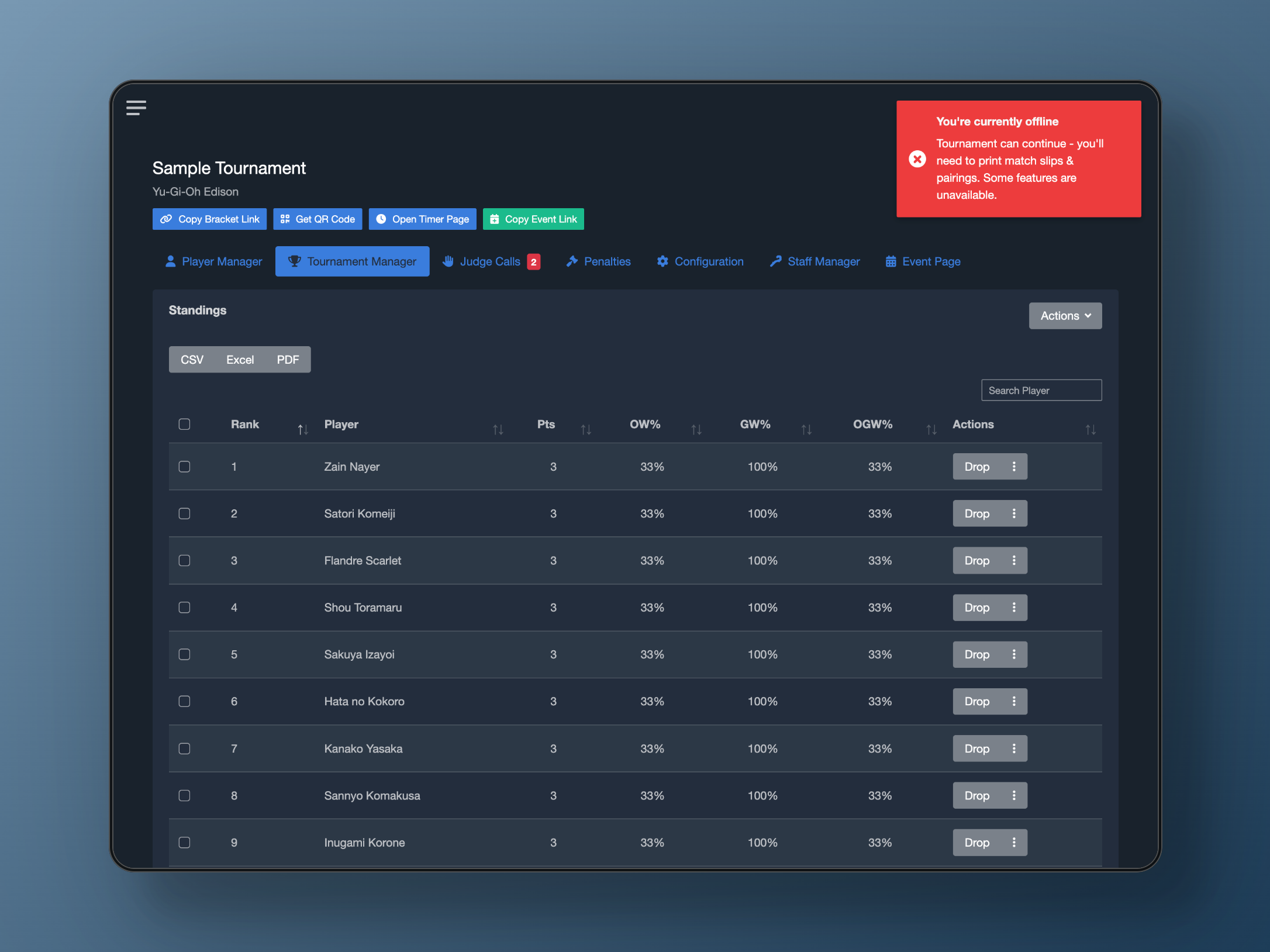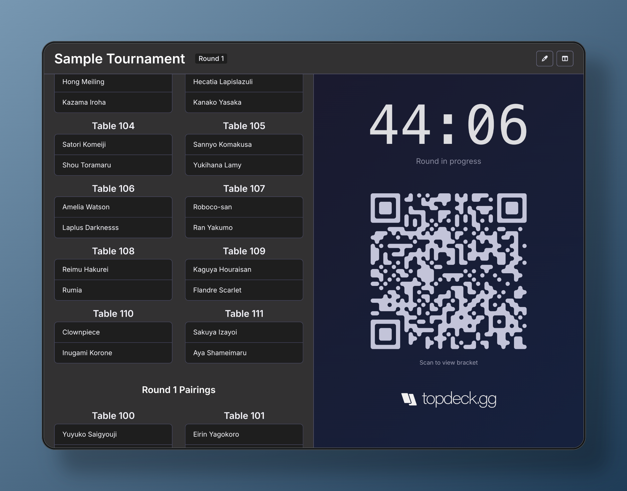 We know how frustrating it is to pause a tournament due to internet issues. TopDeck.gg has an offline mode for if you ever drop connection.